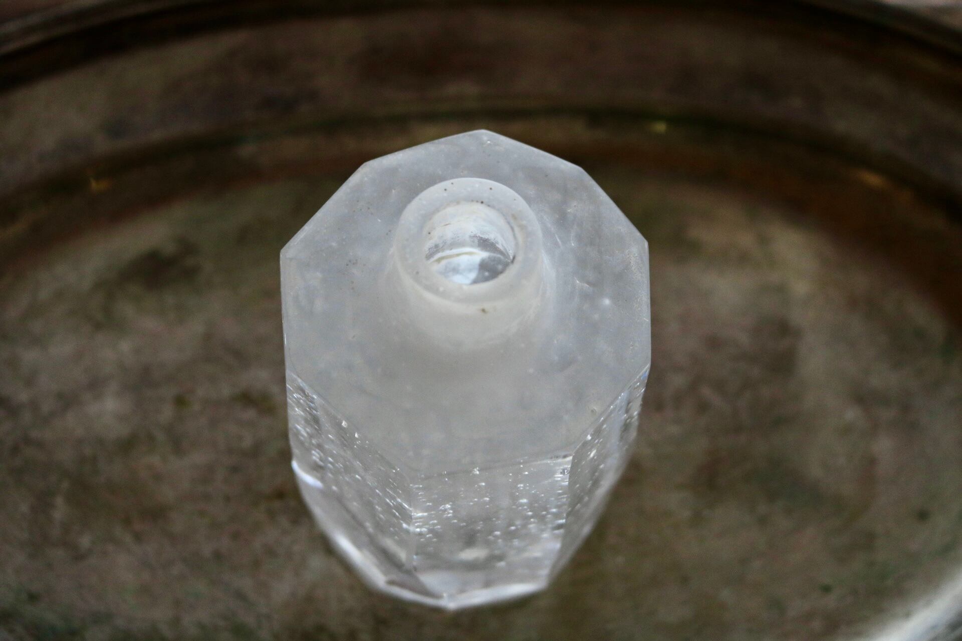 氷をノミて割ったようなイメージで、塊部分を多くし、透明でありながら力強さ、存在感のある花入れです。