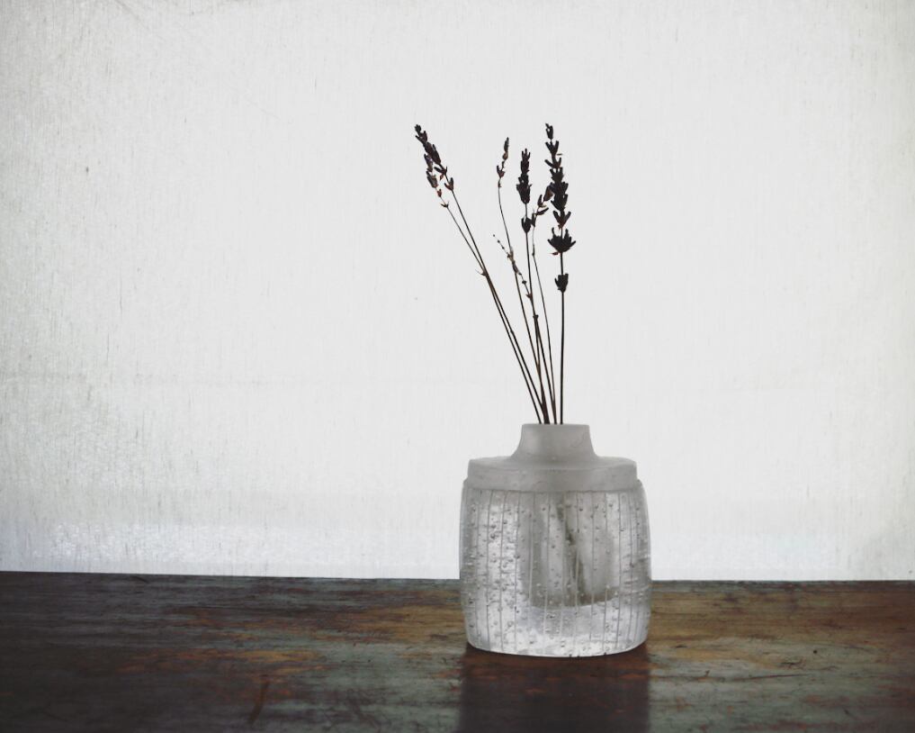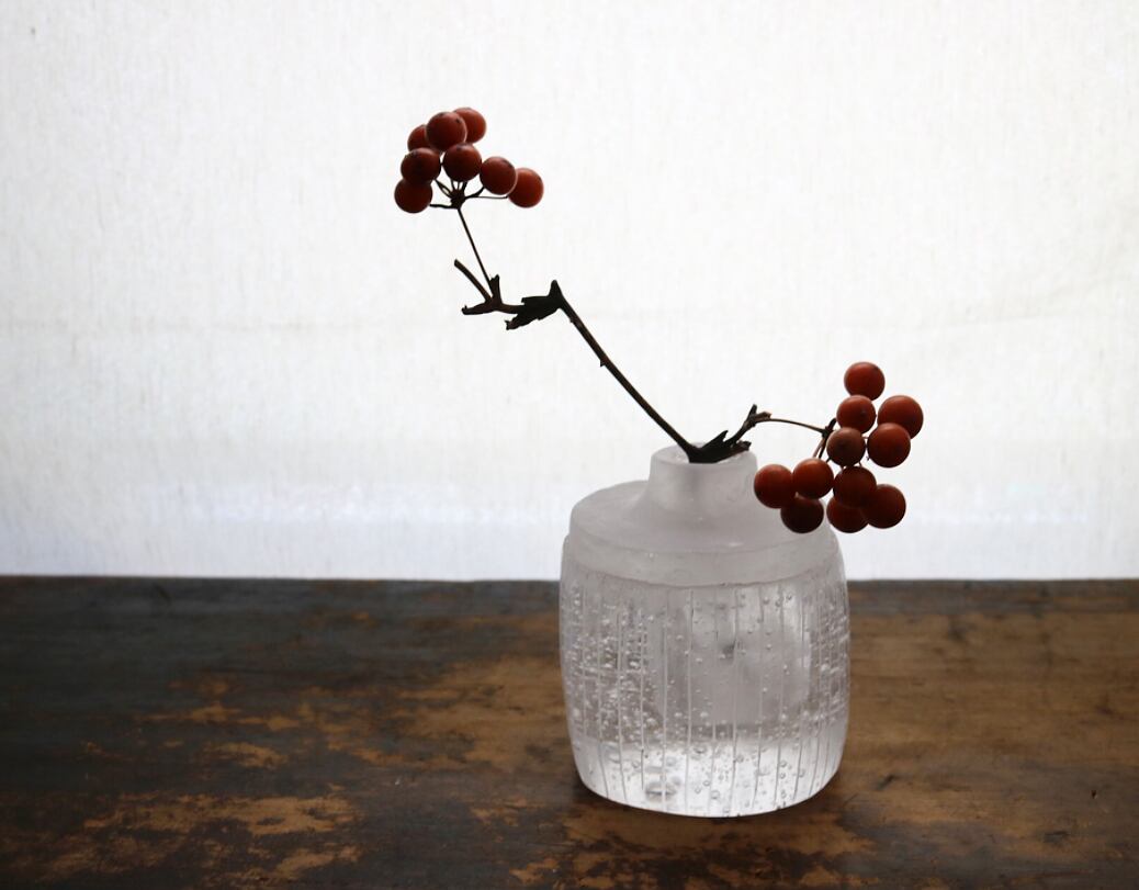 クリアの花器は陽の当たらない時間でもその光がさほど変わらない良さがあります。