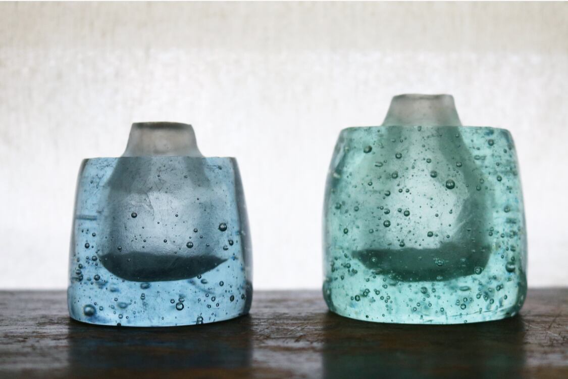 粘土等の原型から石膏型を作り ガラスの欠片を充填して炉で高温焼成し、