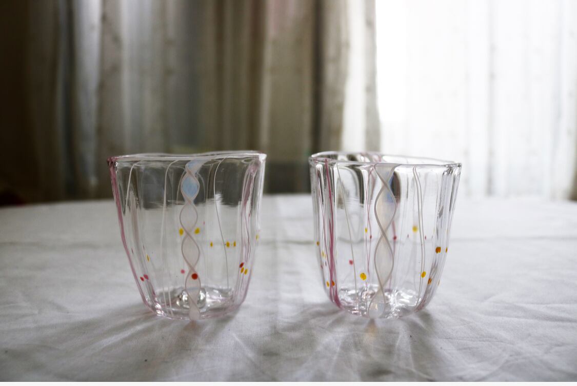 レースケインを作りロールアップして吹いて成形するイタリアの伝統的な技法で作っています。