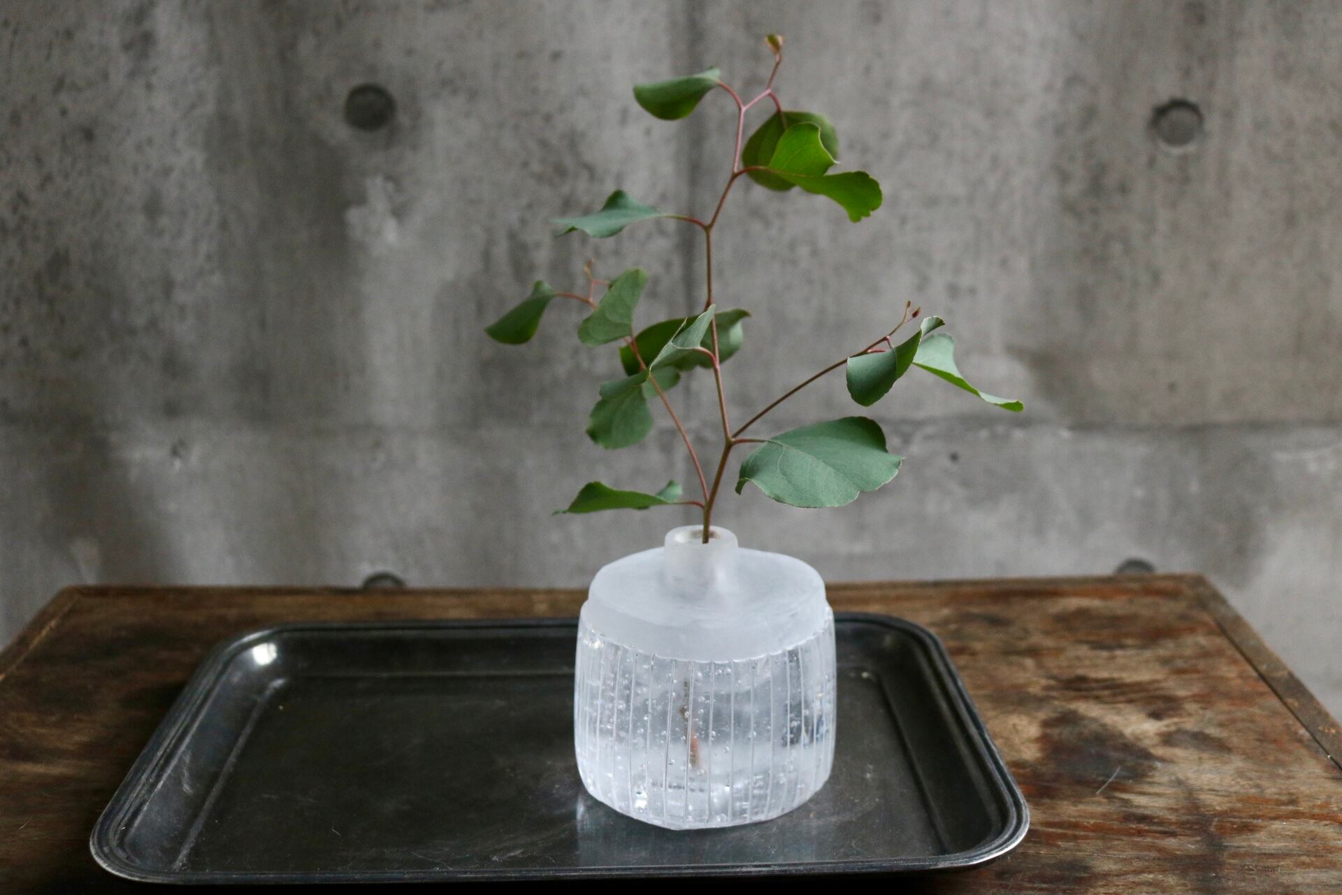 通常のオーバーラインクリアより大きなデザインです。重たい鋳造硝子ですので重量のある枝ものも安定して活けられます。